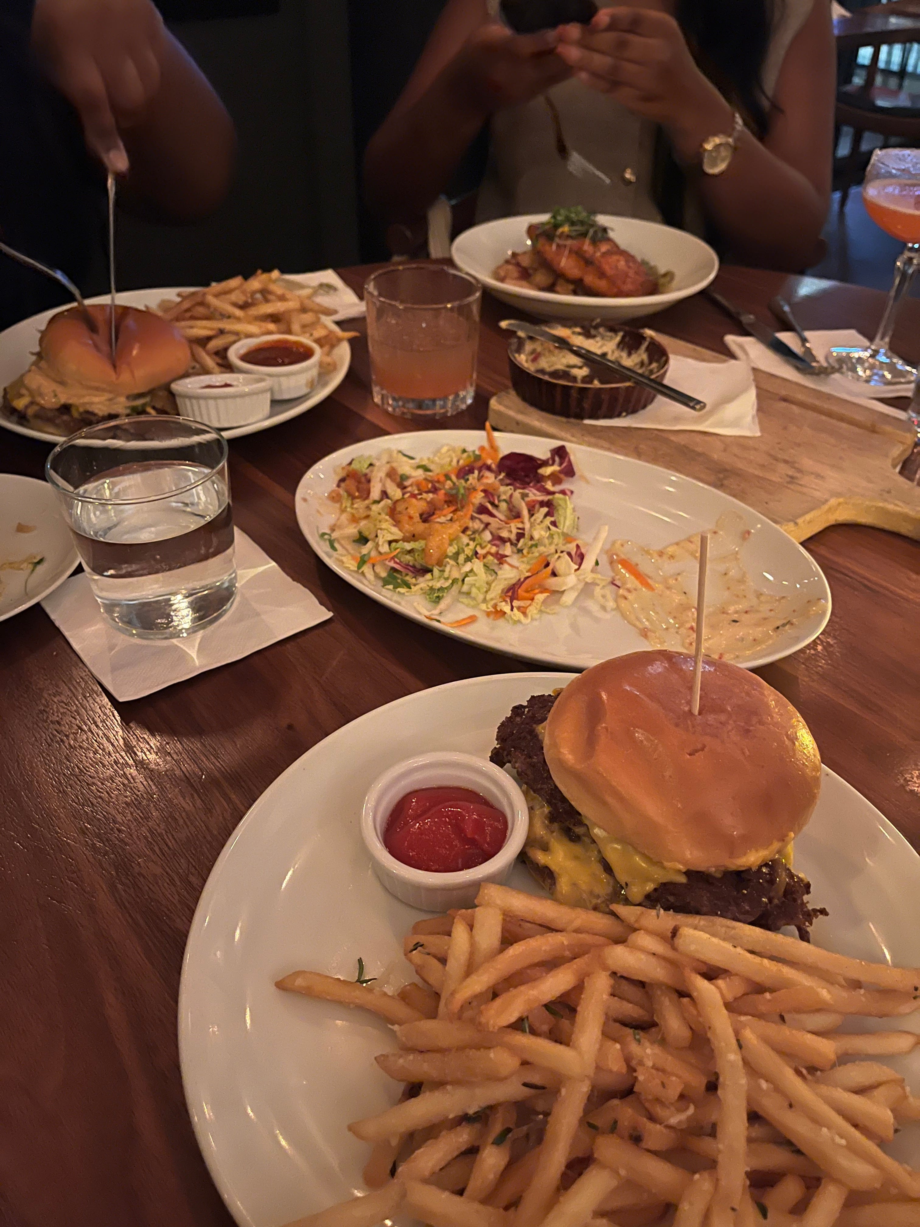Friday night, we switched it up with dinner at our go-to spot: Saints + Council. Goody Burger with fries and a lemon drop with a sugar rim, please! 🍟🍸 The only downside was our waitress (not the best) and an interesting warning about their no-flash policy. Still, we had a great time chatting about Insecure — the show that originally bonded us — and how we viewed Issa and Molly’s friendship. I left that dinner wanting to rewatch the series just to see it through their lens.